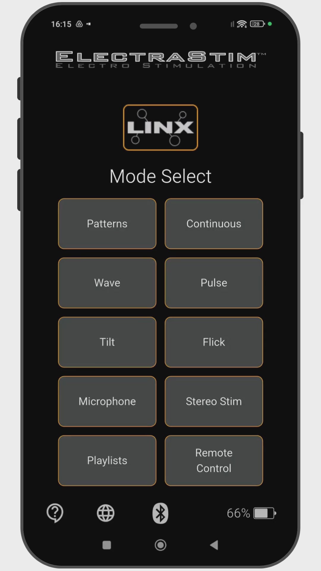 Control stimulation by tilting your phone in different directions.